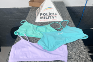 As peças foram retiradas de manequins que estavam expostos na porta do estabelecimento. Nas imagens, é possível observar que a suspeita, inicialmente observa, passa pela entrada do comércio, retorna e retira as roupas. Ao todo foram furtadas cinco peças.
