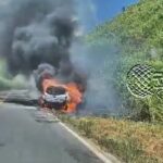Carro com bebê recém-nascido pega fogo na BR-267 em Argirita.