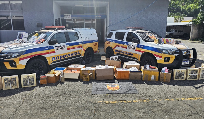 Durante Operação Sentinela das Estradas, desencadeada na BR-267, km 98, a PMRV abordou um caminhão baú de cor branca, de Manhuaçu/MG, e após a verificação da carga transportada, foram visualizados diversos produtos sem nota fiscal, produtos oriundo de outros países e produtos proibidos no país, configurando contrabando/descaminho.