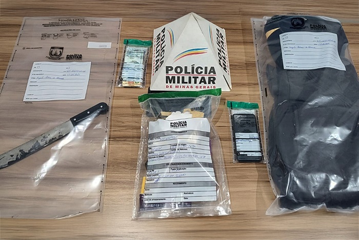 Com a posse das imagens do circuito de segurança, as guarnições da PM realizaram intenso rastreamento, conseguindo localizar os autores e recuperar todos os materiais roubados: 1 facão, 1 celular, R$ 552,00 em dinheiro, Mercadorias da mercearia e as roupas e mochila utilizadas no crime.