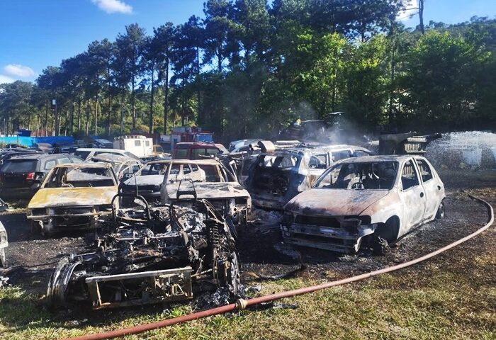 O fogo começou em um veículo elétrico que havia sido incendiado no dia anterior (14) no bairro Cascatinha e foi removido para o ferro-velho. Horas depois, houve uma reignição inesperada das chamas, atingindo outras 15 carcaças de veículos próximas.