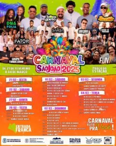 Todos os eventos divulgados nesta programação terão entrada franca, nos circuitos de carnaval.