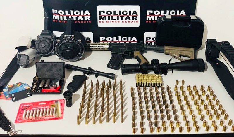 – Apreensão de armas e munições, incluindo 03 armas de fogo, 01 simulacro de fuzil, 167 munições calibre .45, entre outras