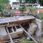 Caminhão perde freio bate em muro e cai em quintal de casa em Ubá.