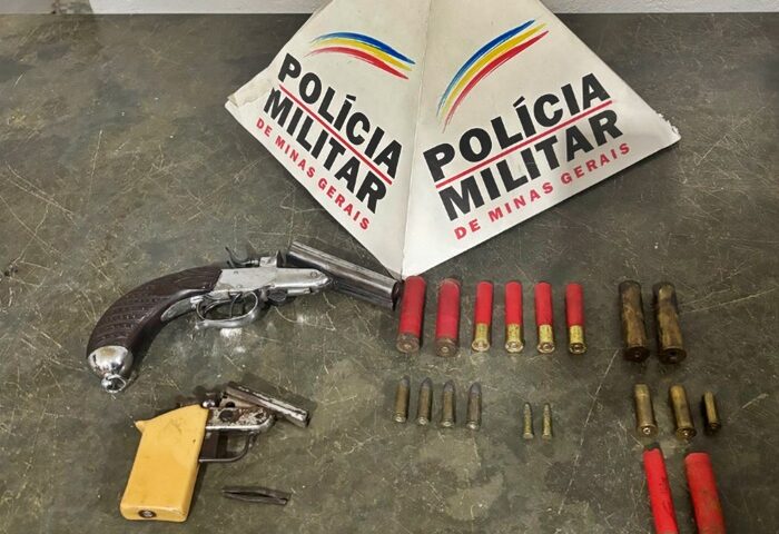 Ao chegarem ao local, os policiais foram autorizados a entrar no imóvel por um homem de 54 anos, natural de Rio Novo, onde encontraram duas armas de fogo do tipo garrucha, calibres .36 e .44, além de munições escondidas em uma lata de arroz.