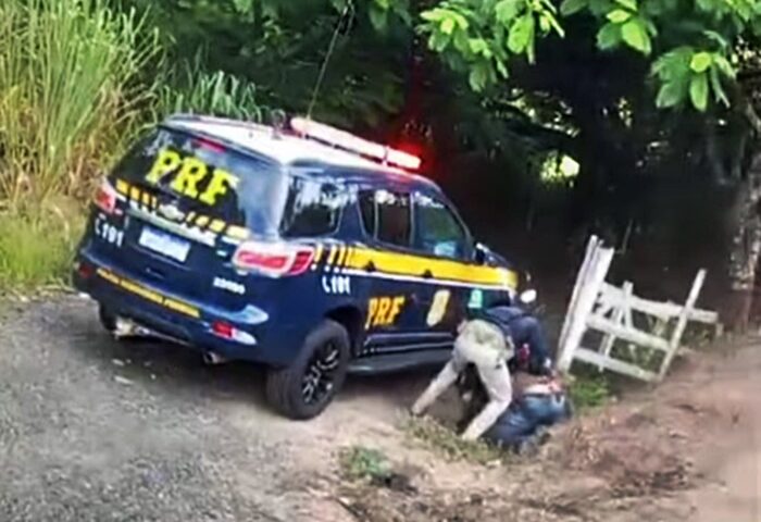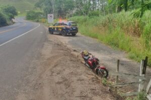 De acordo com a PRF, o motociclista ao passar pela viatura que estava estacionada às margens da rodovia, estava com a placa do veículo amassada, prática utilizada para confundir o registro.