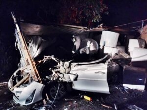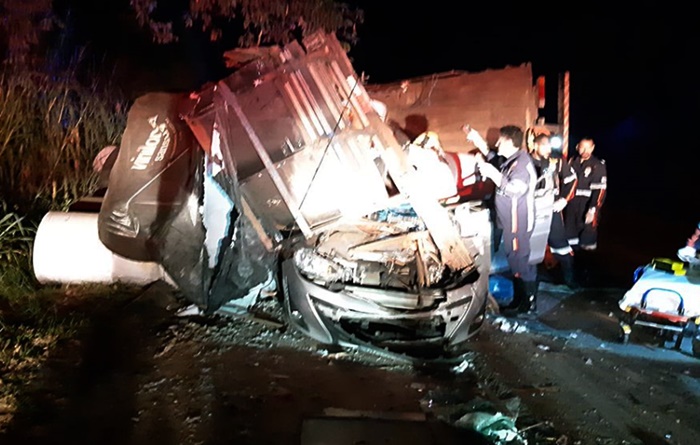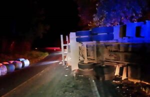 03/07/2025Outro grave acidente ocorreu na BR-267, na região da “Caieira” por volta das 00h36 da madrugada desta sexta-feira 7 de março de 2025. Um automóvel Yaris foi atingido por um caminhão Mercedes-Benz 1519 carregado com bobinas, após este tombar resultando em ferimentos graves para a passageira do Yaris, F.L.C., de 60 anos.