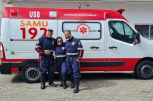Técnica em enfermagem Jacquelino Resende de Oliveira, condutor socorrista Helton Ronald da Silva Arcanjo e médico Thiago Cunha Vandesteen- Foto SAMU