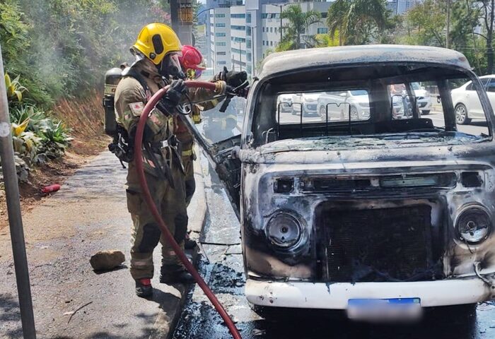 Bombeiros combatem incêndio em Kombi no Portão Sul da UFJF