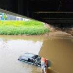 Carro cai no rio Paraibuna em JF e condutor não é localizado pelos bombeiros.