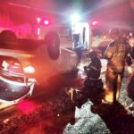 Carro capota e condutora é resgatada das ferragens na estrada União e Industria