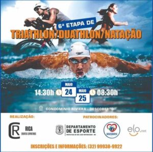 03/19/2025Está agendado para os dias 24 e 25 de maio de 2025, a sexta edição do Triathlon/Duathlon e Natação Águas Abertas São João Nepomuceno e Descoberto, no condomínio Riviera, em Descoberto.