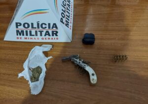 De acordo com informações preliminares da Polícia Militar, onze munições e uma porção de maconha também foram apreendidas, juntamente com uma garrucha.