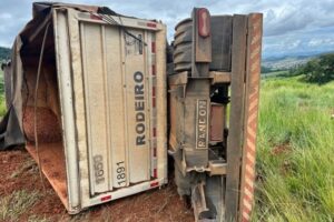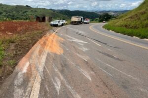 03/22/2025Uma carreta carregada de minério tombou nesta sexta-feira (21) na BR-356, na altura da Serra de Pirapanemae em Muriaé. O motorista de 53 anos disse que o veículo perdeu os freios enquanto descia a via.