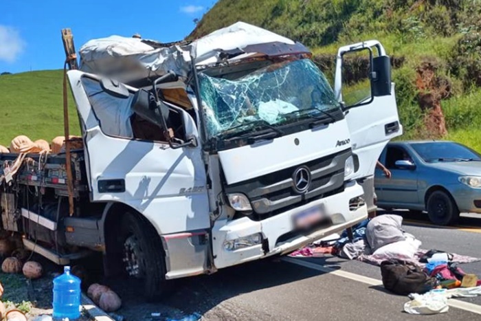 Felizmente, o motorista não se feriu. O veículo estava seguindo em direção para Além Paraíba quando o motorista perdeu o controle da direção, espalhando grande parte da carga no acostamento