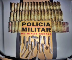 Após uma perseguição de aproximadamente 5 km, o condutor abandonou a motocicleta e entrou em uma mata. A equipe da PMRV localizou o autor e encontrou: