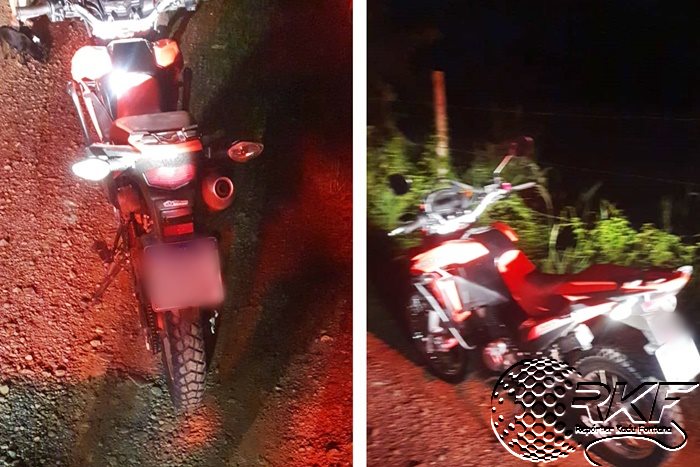 Com apoio das viaturas da cidade de Guarani, Rio Pomba e da patrulha rural de Ubá. Foram realizadas diligências no local e adjacências para localização dos autores e também intenso rastreamento na rodovia entradas e saídas e outras estradas vacinais, porém eles ainda não foram localizados. A motocicleta recuperada foi removida para um pátio credenciado do Detran.