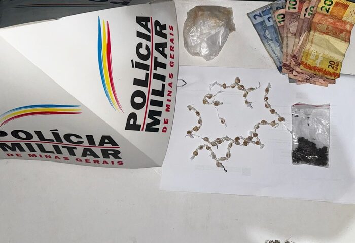 Os autores, com idades entre 18 e 22 anos, foram identificados e flagrados comercializando drogas no bairro Nossa Senhora Aparecida, segundo a PM.