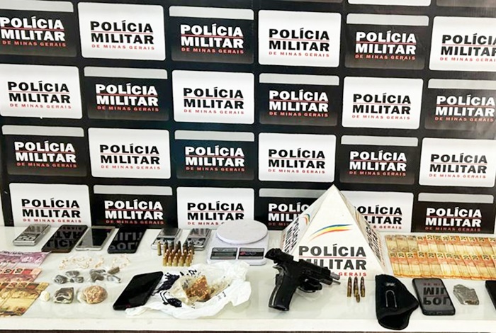 – *Outros:* 5 balanças de precisão, 6 aparelhos celulares e R$ 1.239,00 em dinheiro