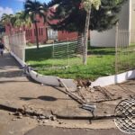 Caminhão perde freio e derruba parte da grade de igreja em Rio Novo.