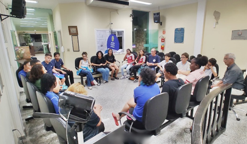 A oficina também contou com a participação do professor auxiliar do PJ, Antônio Maurício, do servidor da Câmara, Ismael Girardi, e da coordenadora municipal do programa, Cristina Sarmento, que contribuíram para a mediação e organização das atividades.