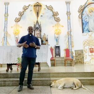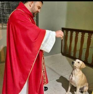 Padre Júnior contou é costumeiro cantar parabéns antes da bênção final e assim que as palmas acabam, o cachorro percebe que a missa está no fim e é o primeiro a sair também da igreja, ”puxando a fila” juntamente com os demais fiéis.