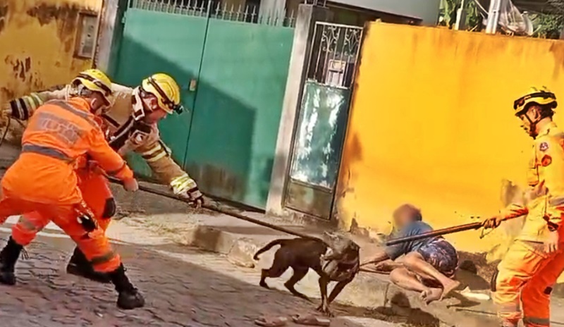 Os militares do Corpo de Bombeiros foram acionados e conseguiram imobilizar o animal. O cabo Esteves, o cabo Machado e o cabo Silva acionaram um cambão para imobilizar o cão que em seguida foi levado para o canil municipal.