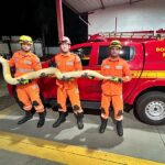 Região: Bombeiros capturam cobra Python de 4 metros em Paula Cândido.
