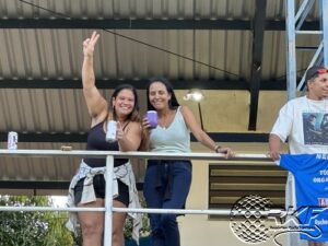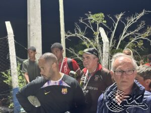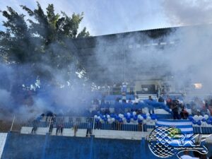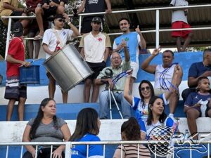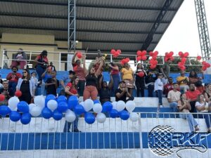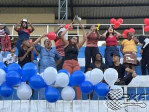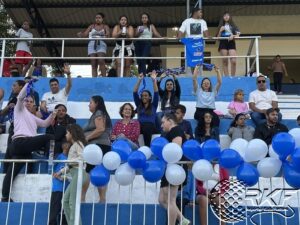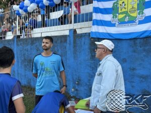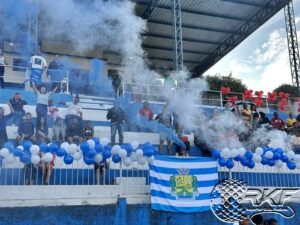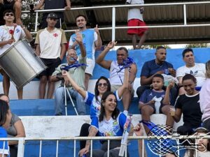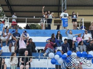 Aliás, as arquibancadas estavam divididas pois de um lado predominava o azul e branco da equipe da casa e do outro lado o vermelho branco da equipe visitante dando um colorido a mais a essa grande disputa.