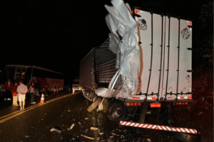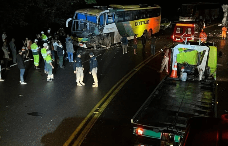 “A curva é muito perigosa e, quando chove, o asfalto fica extremamente escorregadio. Entre 21h e 22h caiu um temporal na região, o que pode ter contribuído para que a carreta perdesse o controle, formando um ‘L’ e colidindo de frente com o ônibus”, explicou um agente da PRF.