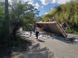 06/17/2025Na manhã desta terça-feira 17 de junho, ocorreu um acidente envolvendo dois caminhões na rodovia BR-267, nas proximidades do Riche Motel. Os veículos trafegavam em sentidos opostos quando um dos caminhões, carregado com granito, tombou ao realizar uma curva.
