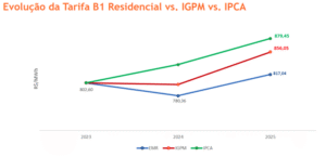 Para clientes do Grupo B residencial, a tarifa de energia elétrica terá acréscimo de 3,79%. Para o Grupo A, que compreende os consumidores da média e alta tensão, o reajuste médio será de 1,61% em 2025.