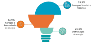 Veja abaixo como fica a composição da conta para os consumidores da Energisa Minas Rio, onde fica claro que o valor que fica com a Energisa Minas Rio é a menor parcela da conta, para fazer frente a toda a estrutura operacional, de atendimento aos clientes e de gestão que a empresa disponibiliza para prestar seus bons serviços, atestados pelos próprios clientes.