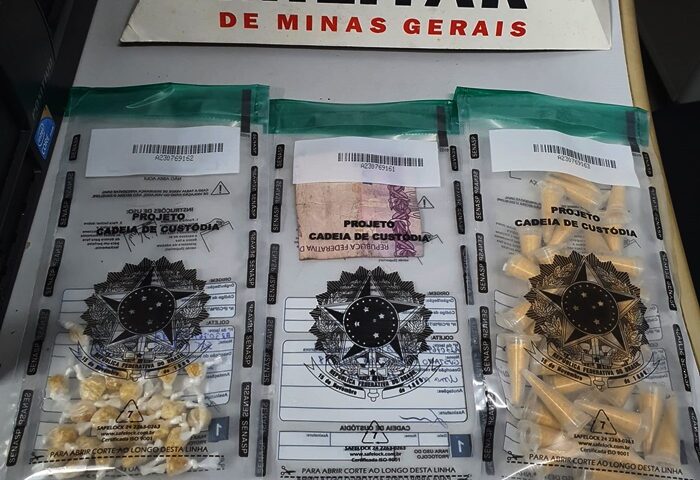 Os militares realizaram uma abordagem rápida e, após ordens claras, o indivíduo de 38 anos, acatou as determinações. Em busca pessoal, foi localizada uma sacola plástica amarrada ao cinto, por dentro da calça do suspeito. Dentro da sacola, havia 39 pinos de substância amarelada análoga à cocaína, 24 pedras de substância amarelada análoga ao crack, embaladas e prontas para a comercialização, e certa quantia em dinheiro.