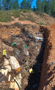 Durante a vistoria, segundo a Polícia Ambiental, foi constatada no terreno, a continuidade do descarte irregular de resíduos sólidos, com presença de materiais como pneus, sofás, colchões, restos de construção civil e lixo doméstico, dispostos sem qualquer controle ambiental. Além disso, foram identificados focos de queima de resíduos a céu aberto e marcas recentes de movimentação de terra, evidenciando o uso contínuo e irregular da área.