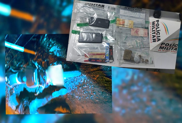 Em determinado ponto da rodovia, de acordo com informações da PM, o passageiro da motocicleta que se encontrava receosamente com a mão na cintura, fazendo menção de estar armado, tentou descartar uma bolsa, mas a ação foi prontamente percebida pelos policiais. Após uma perseguição, a equipe conseguiu abordar os suspeitos e recuperar a bolsa que havia sido dispensada. No interior da bolsa, foram encontrados uma barra de maconha, sementes e buchas da mesma substância, 11 papelotes de cocaína, dinheiro e materiais para fracionamento e embalagem de drogas.