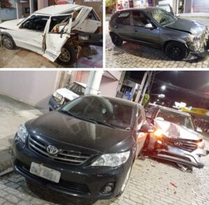 O Creta atingiu um Chevrolet Celta no cruzamento das vias e perdeu o controle e atingindo também um Fiat Uno e um Toyota Corolla que estavam estacionados.