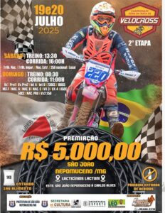 07/14/2025Nos dias 19 e 20 de julho de 2025 (sábado e domingo), a sede dos Laticínios Lactoni (estrada São João x Carlos Alves), receberá a 2ª etapa do Campeonato Zona da Mata de Velocross.