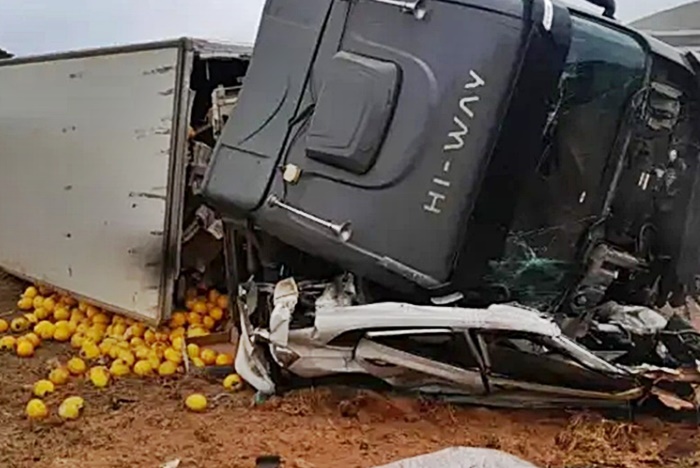 De acordo com informações da PRF, com base nas averiguações feitas no local do acidente, verificou-se que, numa curva, o automóvel passou a transitar pela contramão de direção. Para evitar a colisão, o motorista da carreta carregagada com melões, realizou ua manobra busca, contudo, os veículos colidiram frontalmente e, em seguida, a carreta tombou sobre o automóvel.