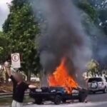 Automóvel é consumido pelas chamas na Av. Brasil em Juiz de Fora