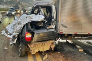 08/09/2025Casal morre e caminhoneiro fica ferido após carro bater em caminhão na BR-116 em Laranjal.