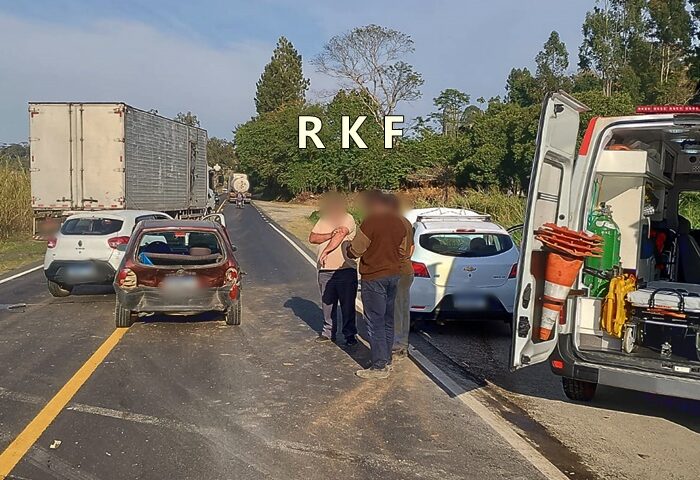Um engavetamento entre três automóveis, sendo um deles da Secretaria de Saúde de Guarará, MG ocorreu na BR-267 na manhã desta quinta-feira 21 de agosto próximo da queijaria em Bicas.