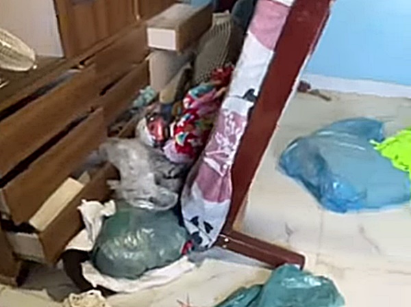 Nas imagens é possível observar que em uma das casas, o ladrão invadiu pela janela. Um fogão foi deixado para trás em um gramado, bem como um botijão de gás. As vasas foram todas reviradas.