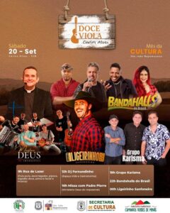 09/08/2025A programação do Mês da Cultura 2025 de São João Nepomuceno contará com um dia especial no distrito de Carlos Alves, em outra edição do Festival Doce Viola, no dia 20 de setembro (sábado).