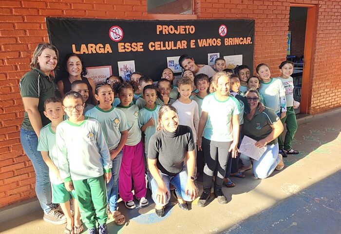 Que projeto incrível! A professora Tatiana Dalila Fernandes de Oliveira Rodrigues do 2º ano da Escola Municipal Professor Renato Elói de Andrade em Coronel Pacheco, Zona da Mata mineira, desenvolveu o projeto “Larga o Celular e Vamos Brincar” com o objetivo de conscientizar as crianças e seus familiares sobre as brincadeiras além das telas dos celulares.