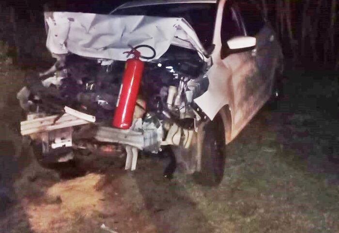 Os condutores tentaram desviar de um cavalo na pista e colidiram frontalmente, resultando em um dos veículos pegando fogo. A parte dianteira do carro foi atingida e as chamas se espalharam para a vegetação ao lado da via.