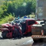 Idoso morre em acidente entre carro e carreta na BR-116 em Leopoldina.