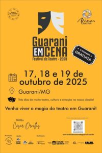 09/24/2025A cidade de Guarani (MG) vai se transformar em palco da arte nos dias 17, 18 e 19 de outubro de 2025, durante a realização do 1º Festival de Teatro “Guarani em Cena”.
