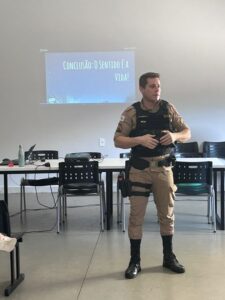 O objetivo foi ministrar uma palestra educativa para as turmas do 9º ano do ensino fundamental, abordando o tema central deste ano: “Desacelere. Seu bem maior é a vida”. Durante a apresentação, foram abordados diversos tópicos para conscientização, incluindo o funcionamento da Lei de Trânsito, o perigo de manobras arriscadas como o “grau” e a importância do respeito às normas para a segurança coletiva.