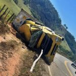 Motorista morre após carreta tombar na MG-133 entre Tabuleiro e Rio Pomba